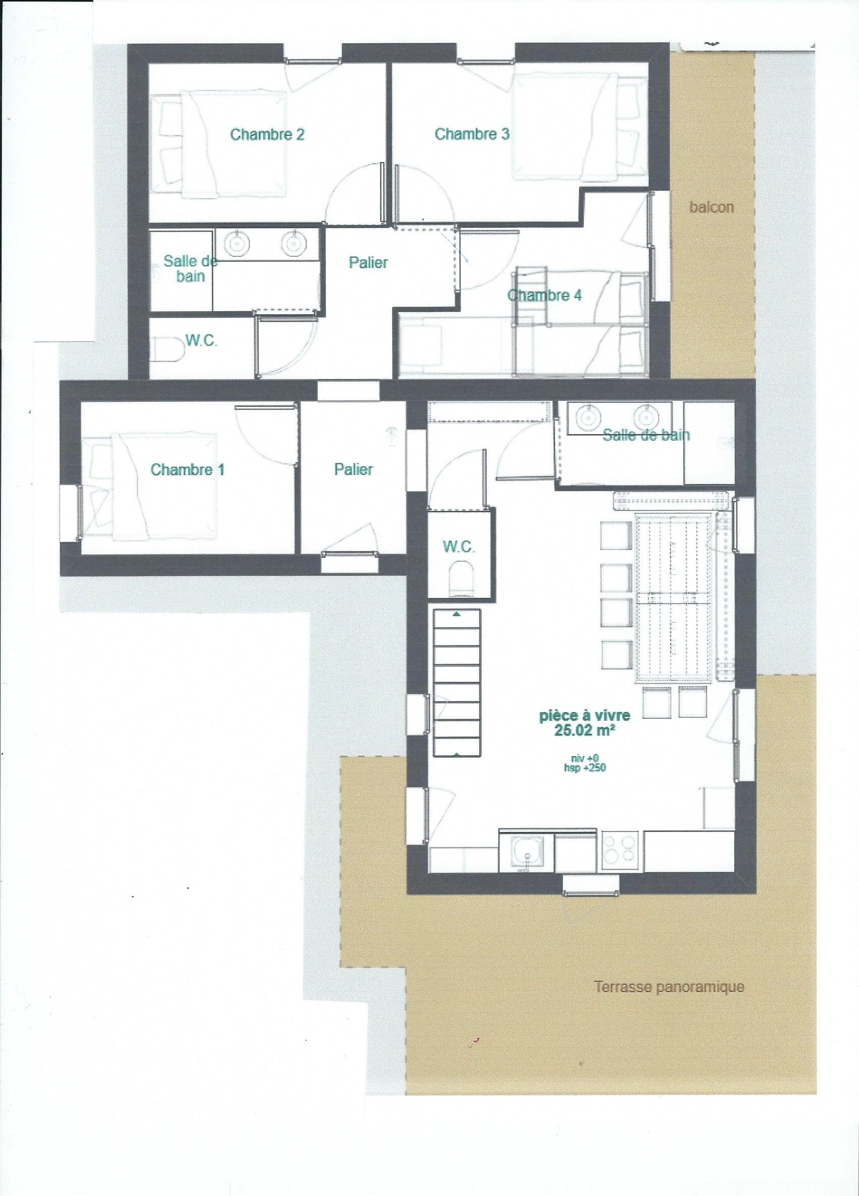 The En-HAUT apartment is on the 1st and top floor, with a panoramic terrace and 1 second balcony (snow-front view).