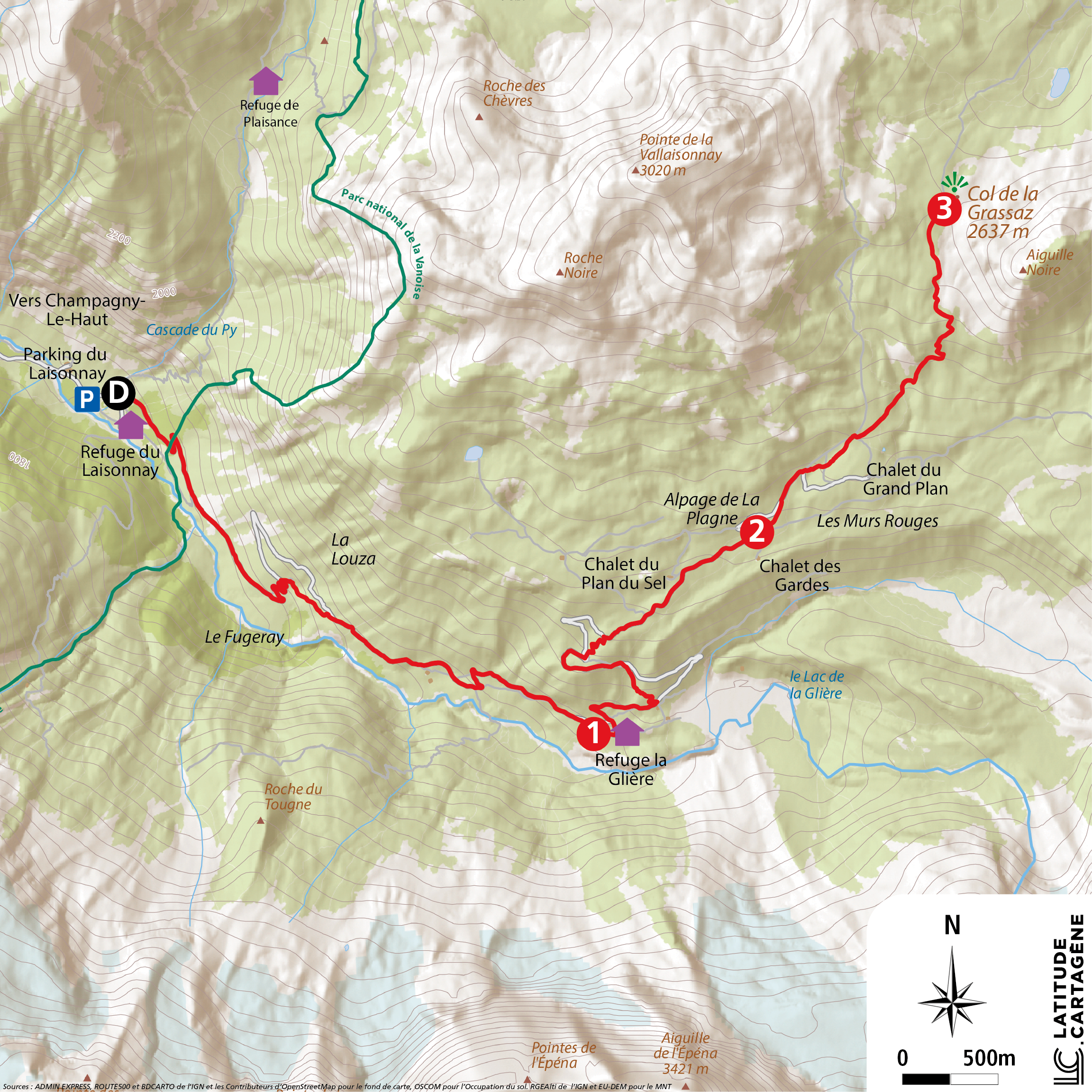 0/ From the Laisonnay d'en bas (Alt. 1560m) to the Refuge de la Glière