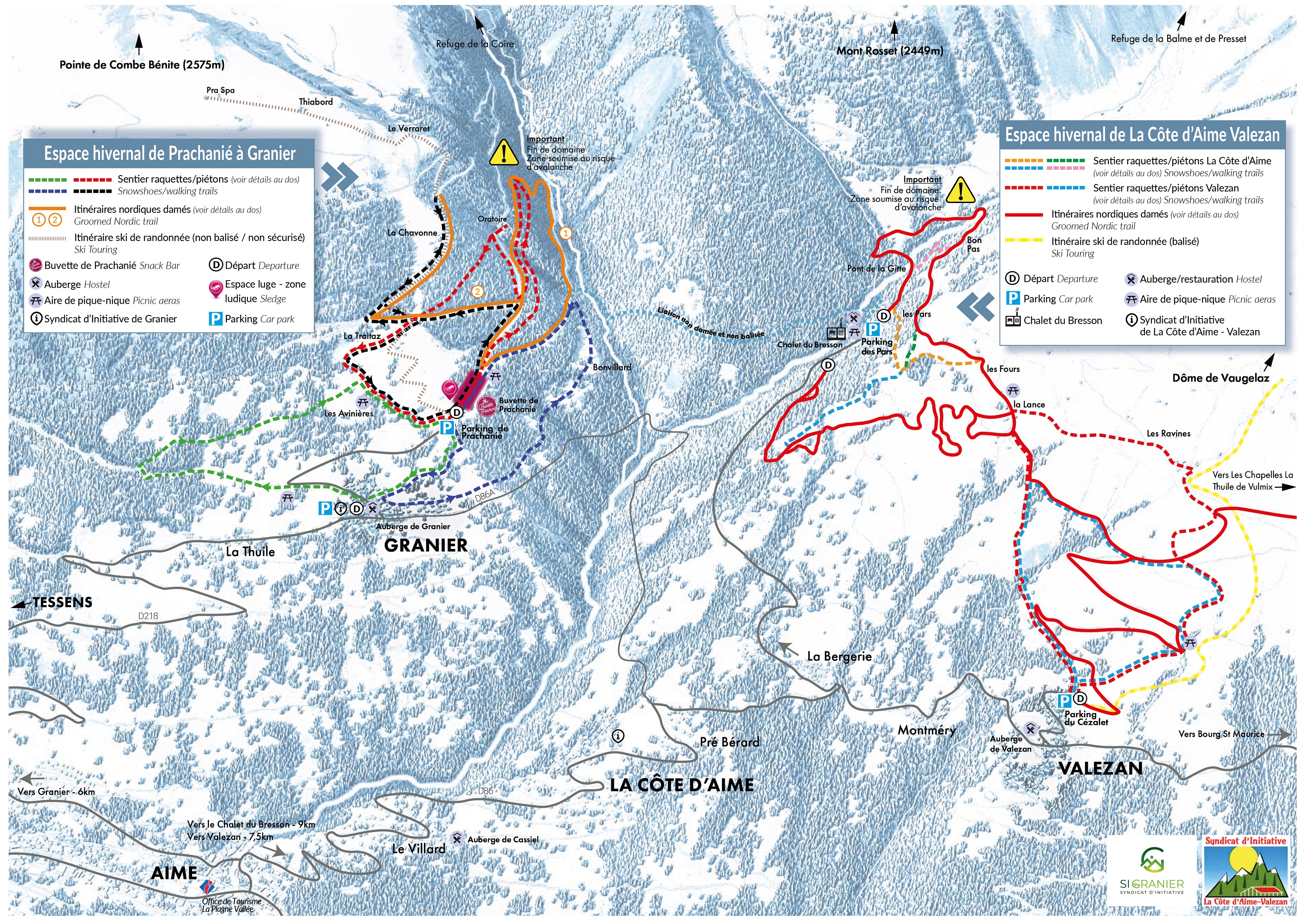 Make the most of the nordic itineraries and snowshoeing routes leaving from the car parks at Les Pars in La Côte d'Aime or Valezan.