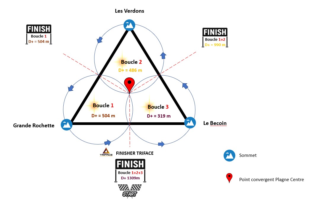 TRIFACE is a ski touring race with a special "stop or keep going" format, with a series of 3 successive circuits that climb to 3 renowned mountain peaks around Plagne Centre: Grande Rochette, Verdons and Becoin.