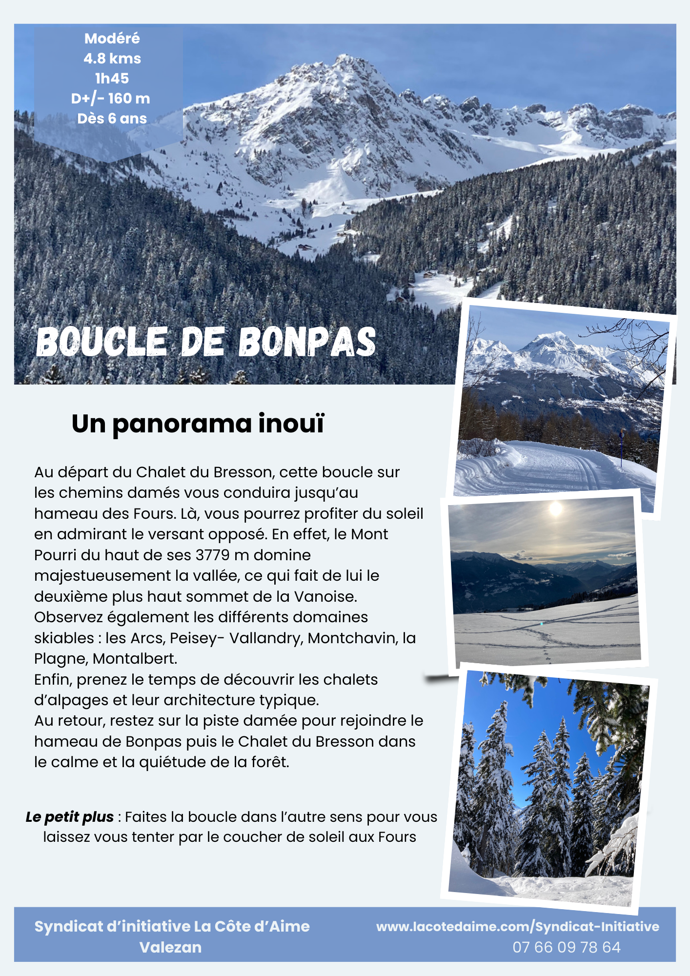 5/ Cross the small hamlet of Bonpas, and continue on the groomed trail back to the Pars parking lot (passing through La Gitte, then the La Gitte bridge).